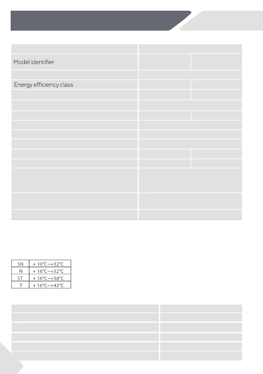 This appliance is intended to be used at an ambilent temperature indicated below: