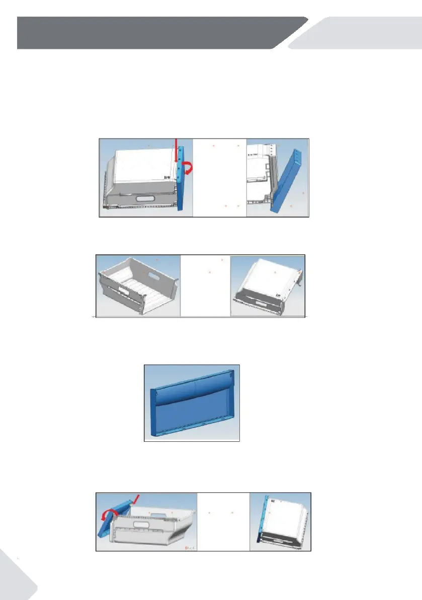 Nadat de lade in de opening van het ladefront is geplaatst, draait u het ladefront om de lade