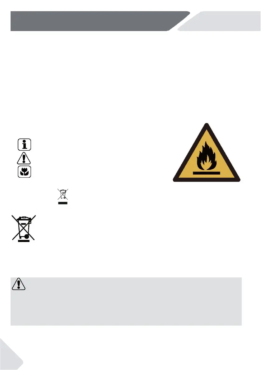 UPOZORENJE: Rizik od vatre / zapaljivog materijala. Simbol označava da postoji opasnost