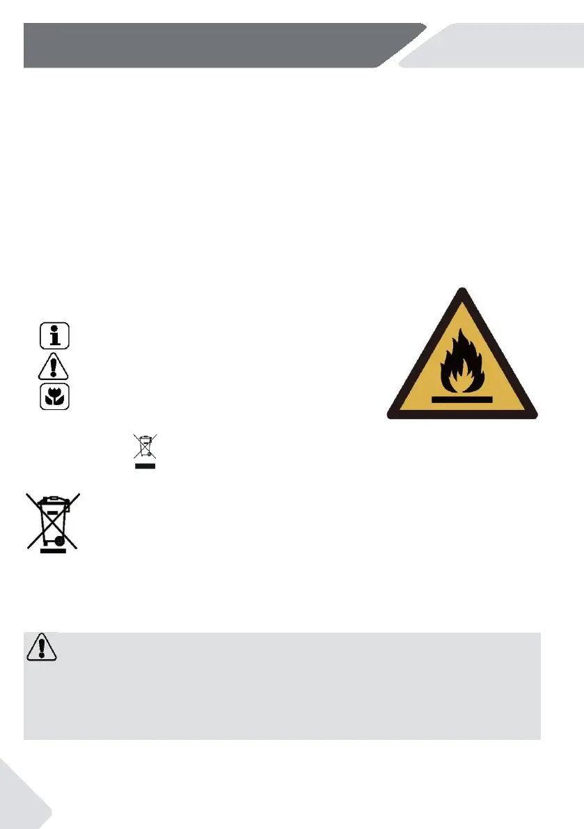 VAROVÁNÍ: Nebezpečí požáru / hořlavý materiál. Tento symbol signalizuje, že hrozí