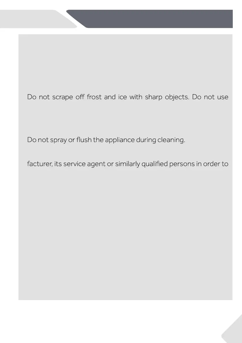 ▶ Do not clean the cold glass shelves or glass door with hot water.