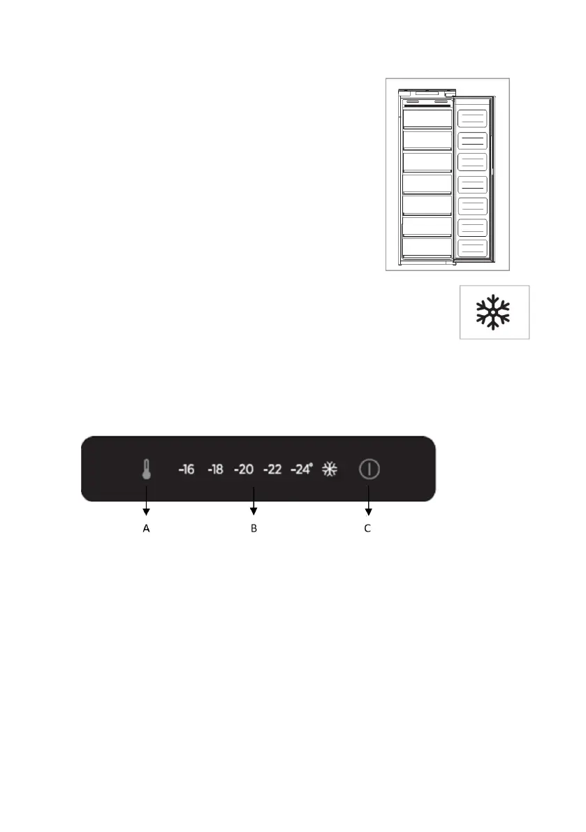 ustawień to -16 ° C, -18 ° C, -20 ° C, -22 ° C, -24 ° C i funkcja super zamrażania.