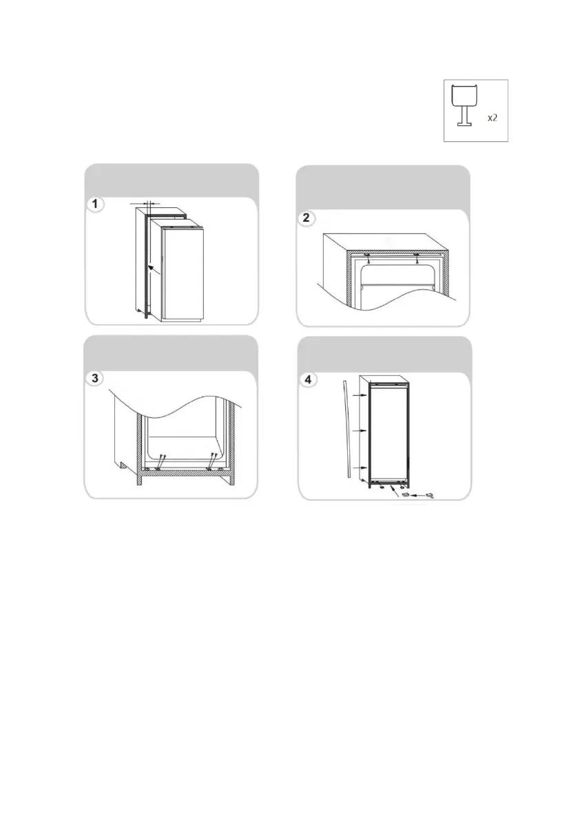 • Upewnić się, że między stroną bez zawiasów a ścianą szafy jest szczelina od 3 do 4 mm.