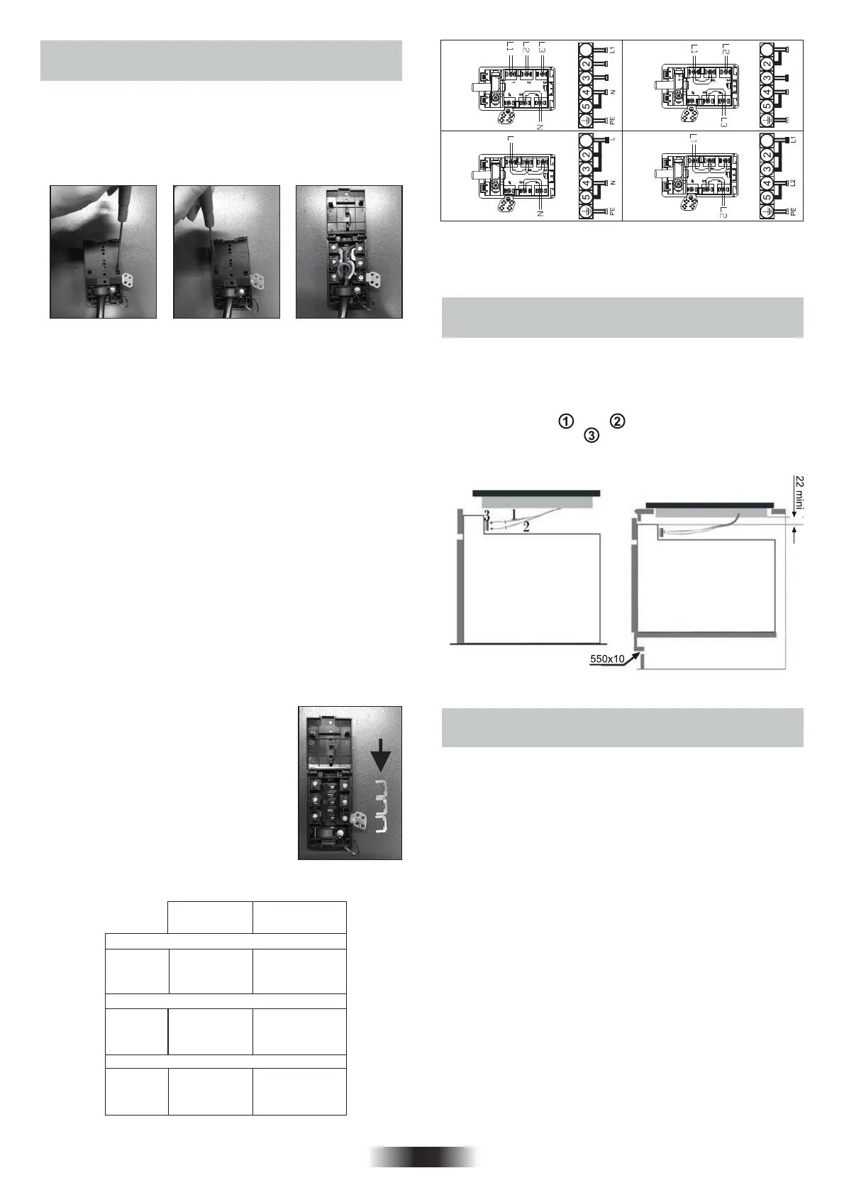 La connexon au crcut électrque, sur le four ou sur la table de cusson