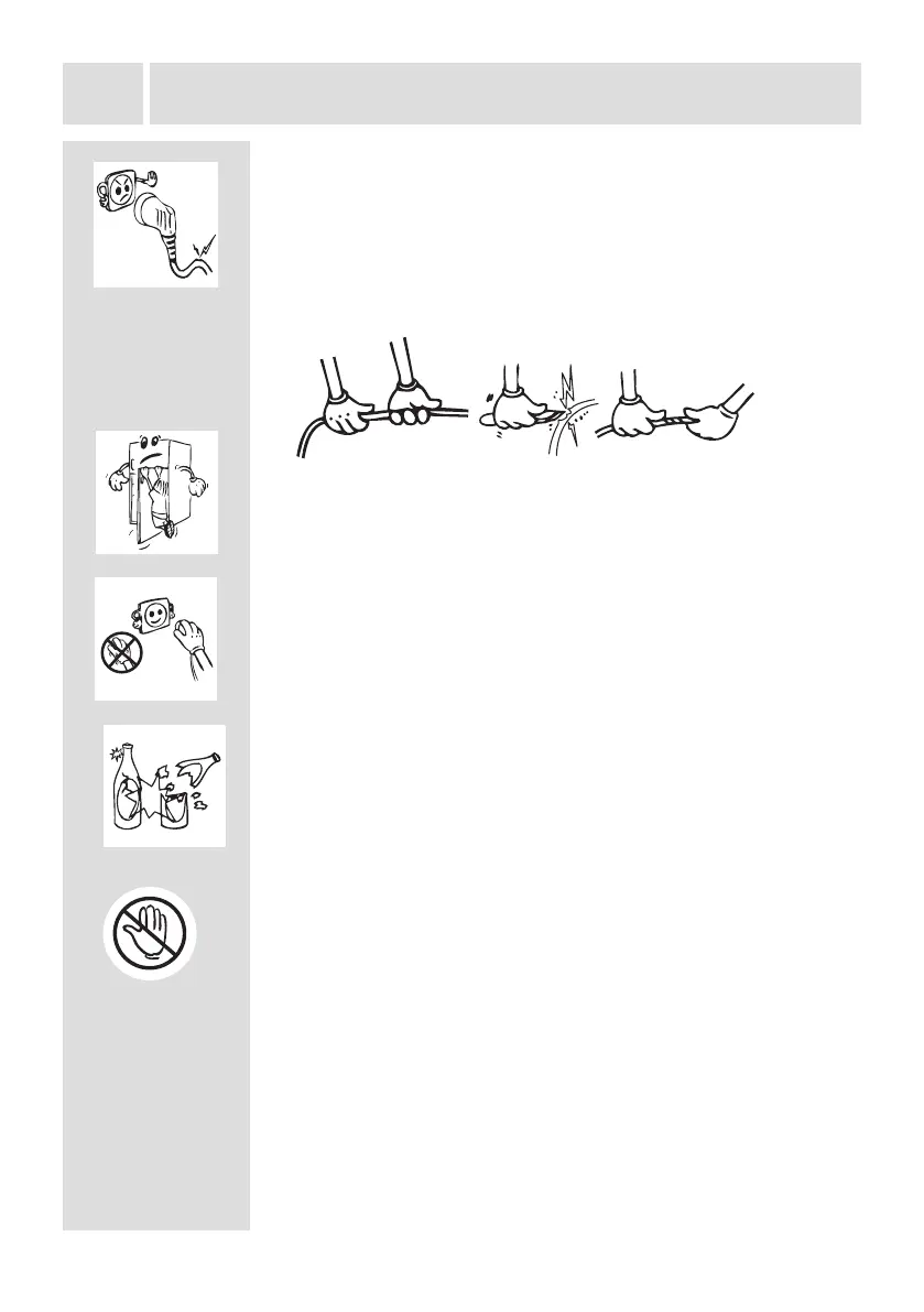 • Ist der Netzstecker beschädigt, zerrissen oder verschlis-