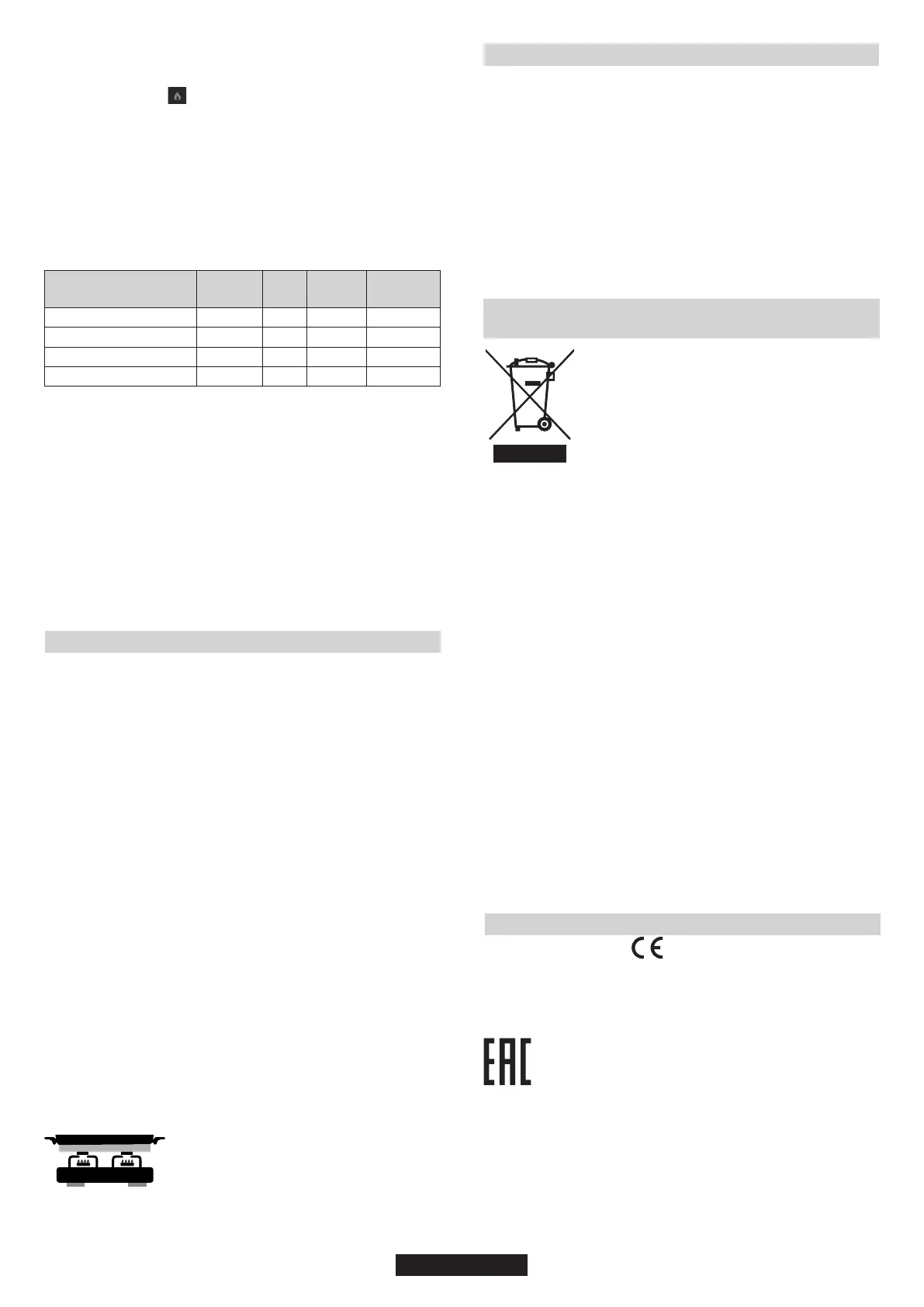 размерам газовых конфорок (см. Табл. А).