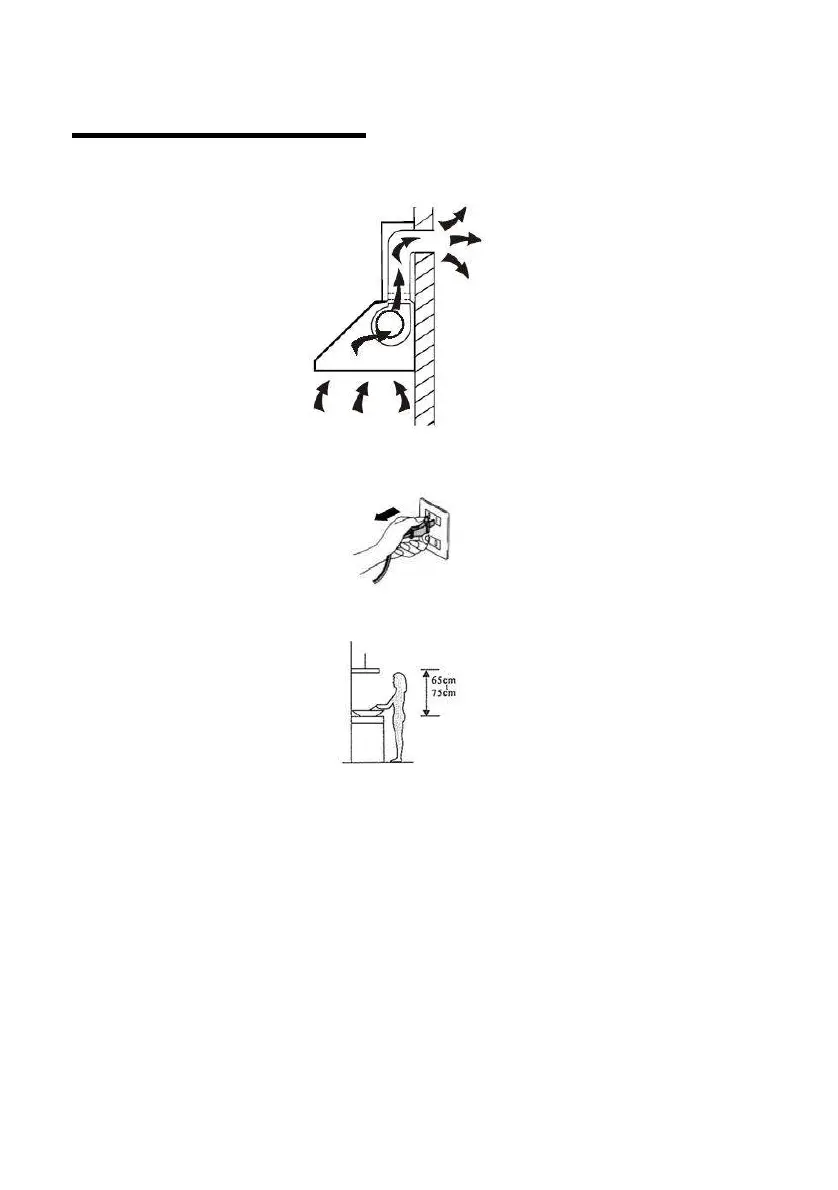2. Odsavač instalujte ve vzdálenosti 65~75 cm nad varnou desku pro