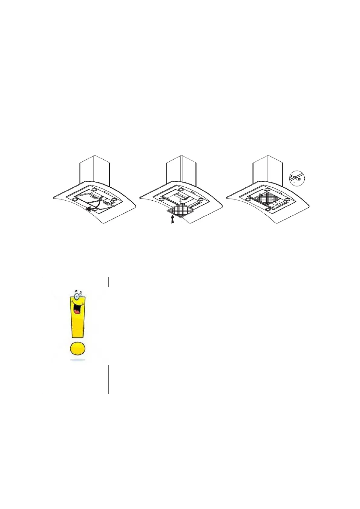 Nachdem Sie die Vorderkante des Kohlefilters in den Schlitz der Dunstabzugshaube