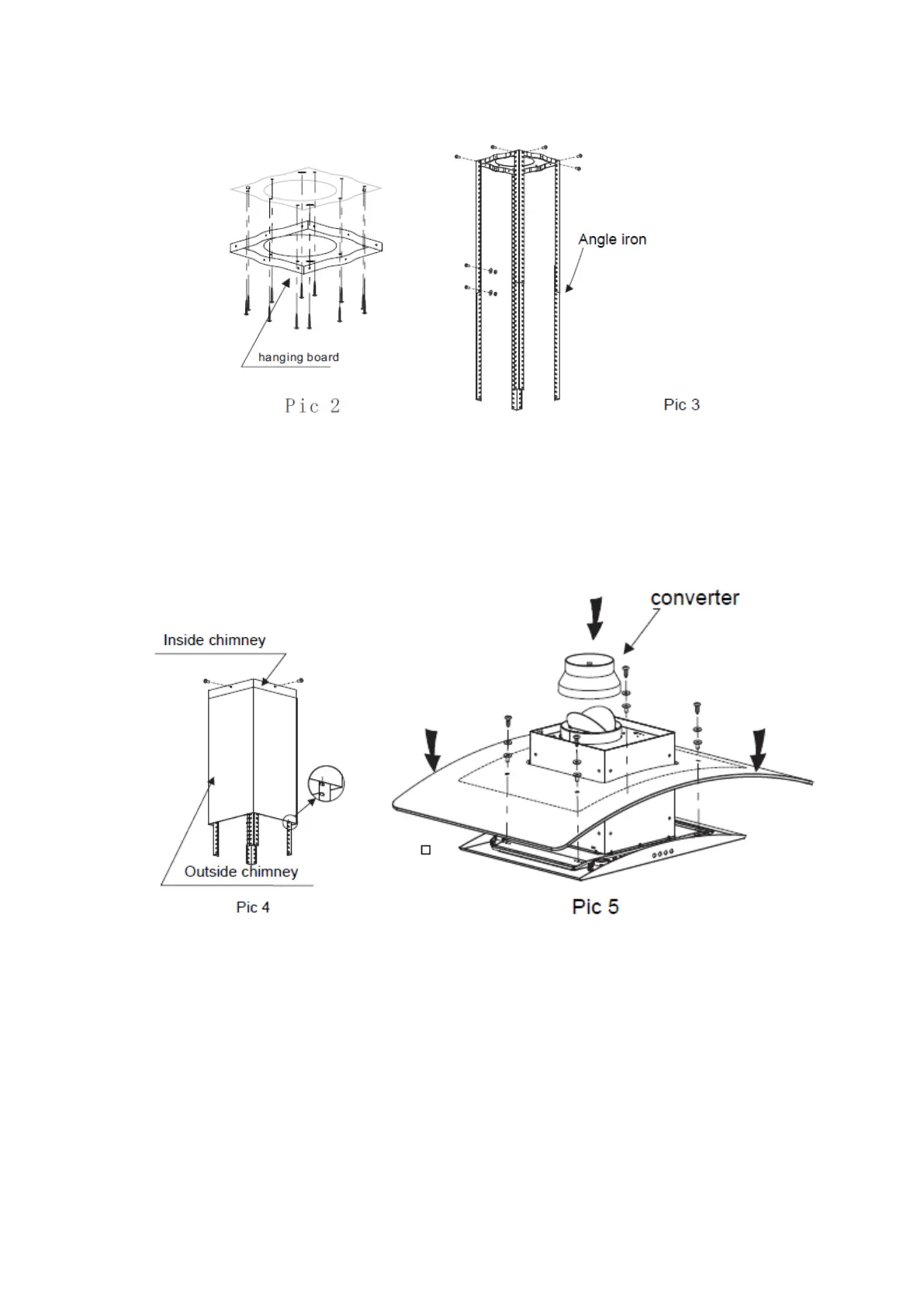 hanging board,see pic 3 then put on the outside chimney, a hook will be used to put