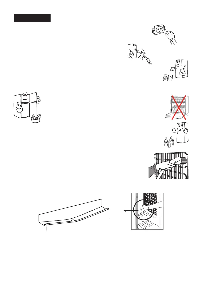 • Desligar o frigorífico antes de iniciar a limpeza.