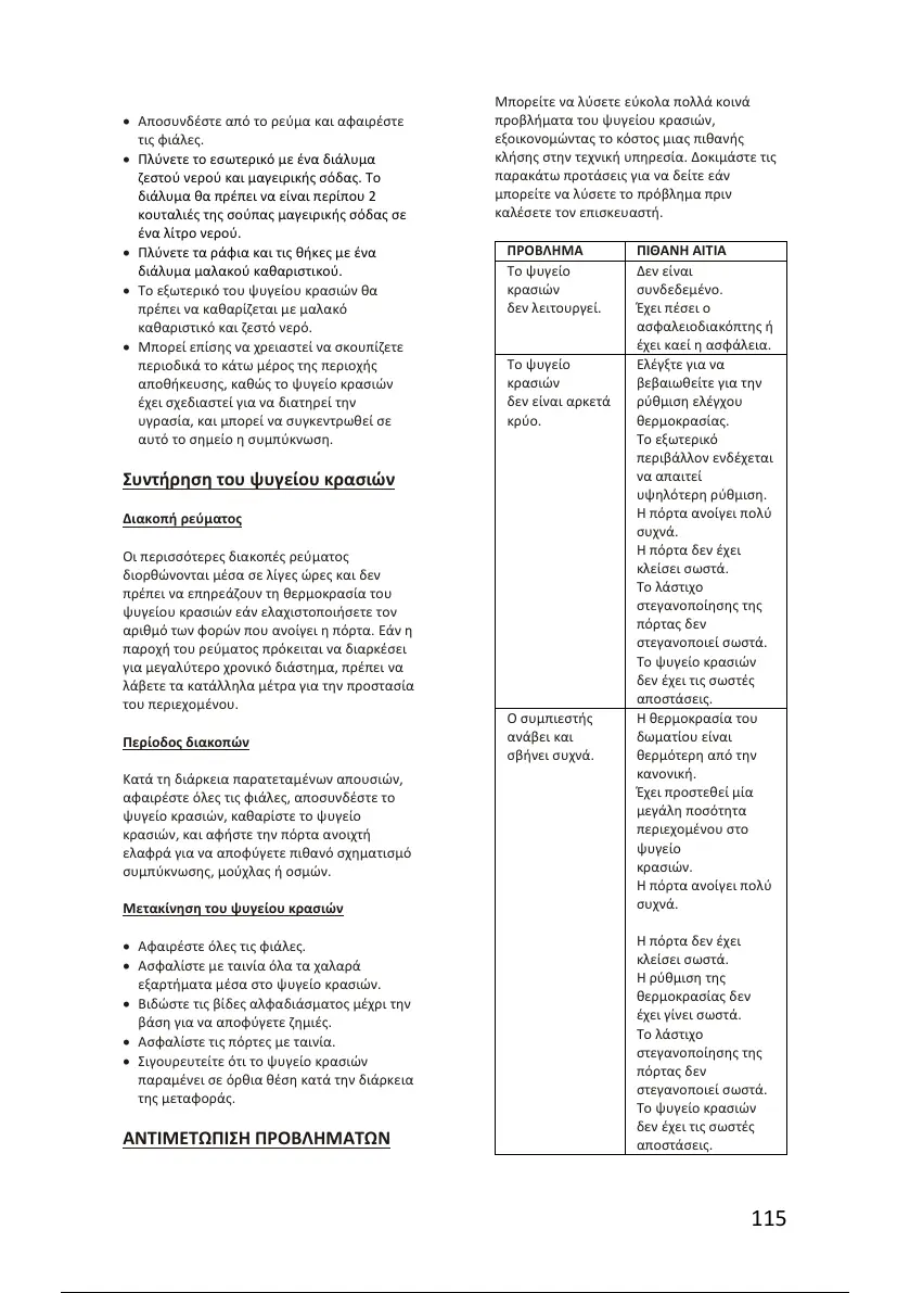 • Σιγουρευτείτε ότι το ψυγείο κρασιών