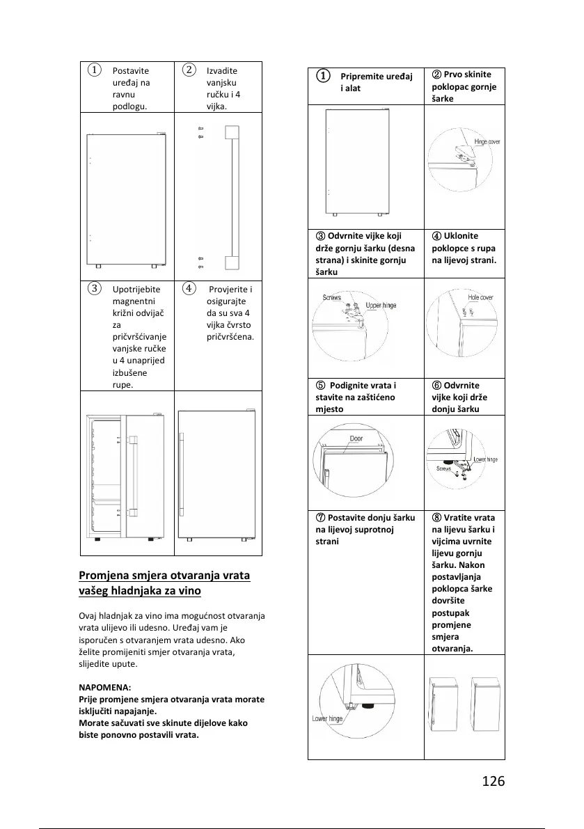Prije promjene smjera otvaranja vrata morate