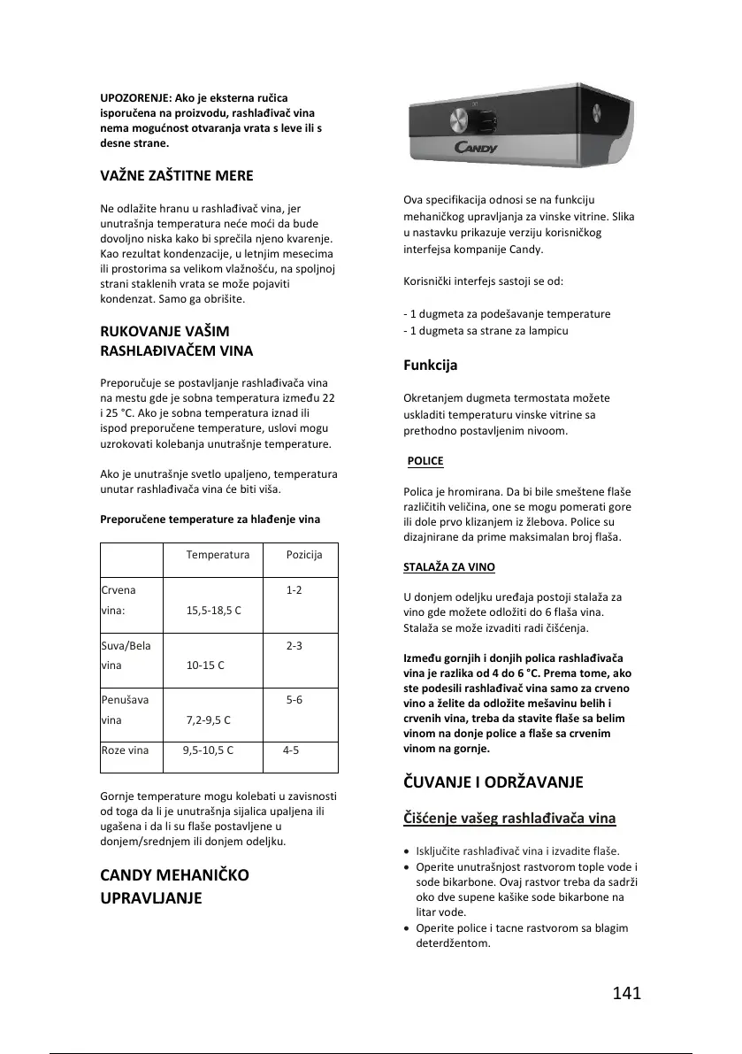 mehaničkog upravljanja za vinske vitrine. Slika