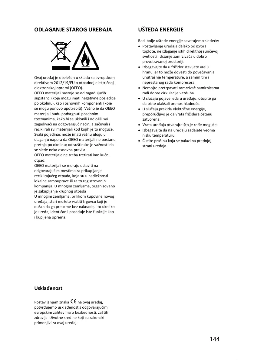 Ovaj uređaj je obeležen u skladu sa evropskom