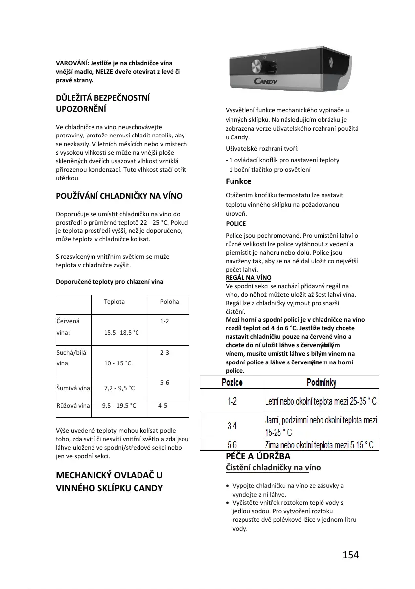 VAROVÁNÍ: Jestliže je na chladničce vína