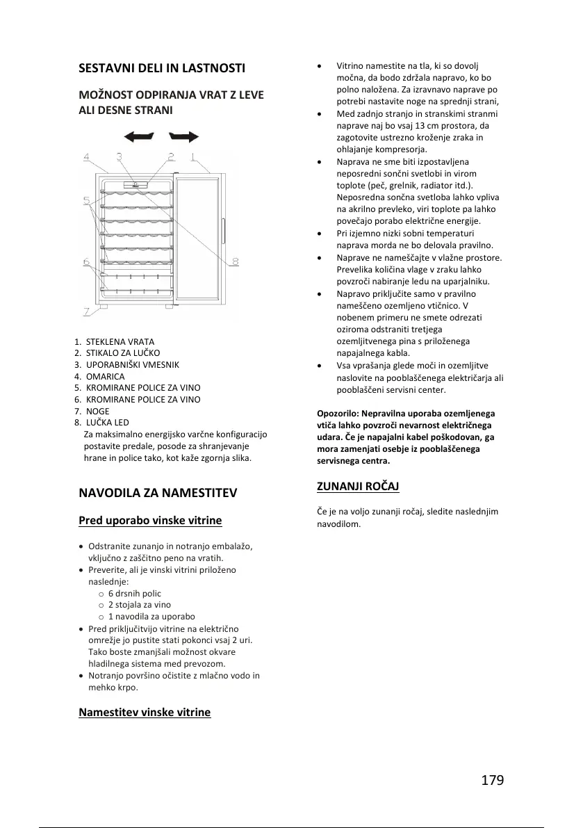 • Preverite, ali je vinski vitrini priloženo