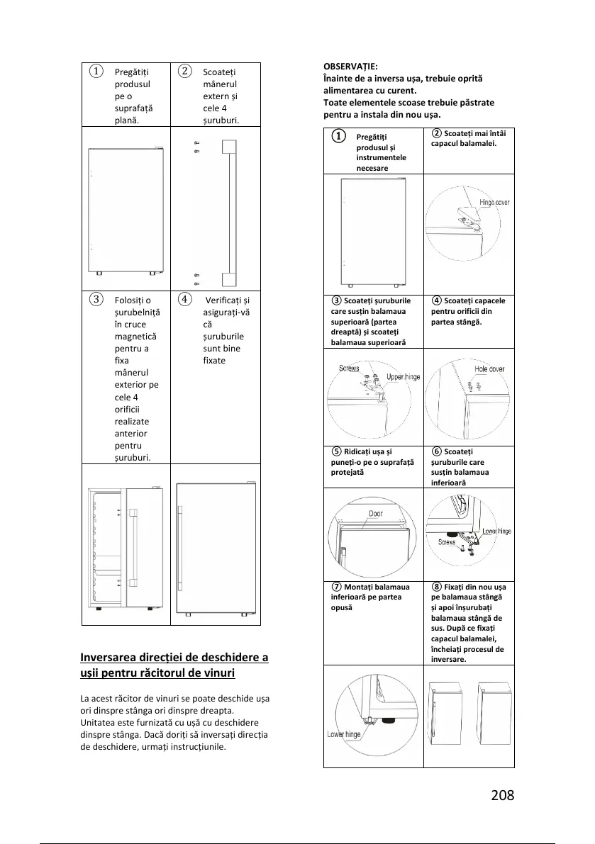 Unitatea este furnizată cu ușă cu deschidere