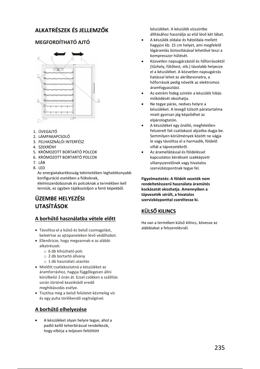 A borhűtő használatba vétele előtt