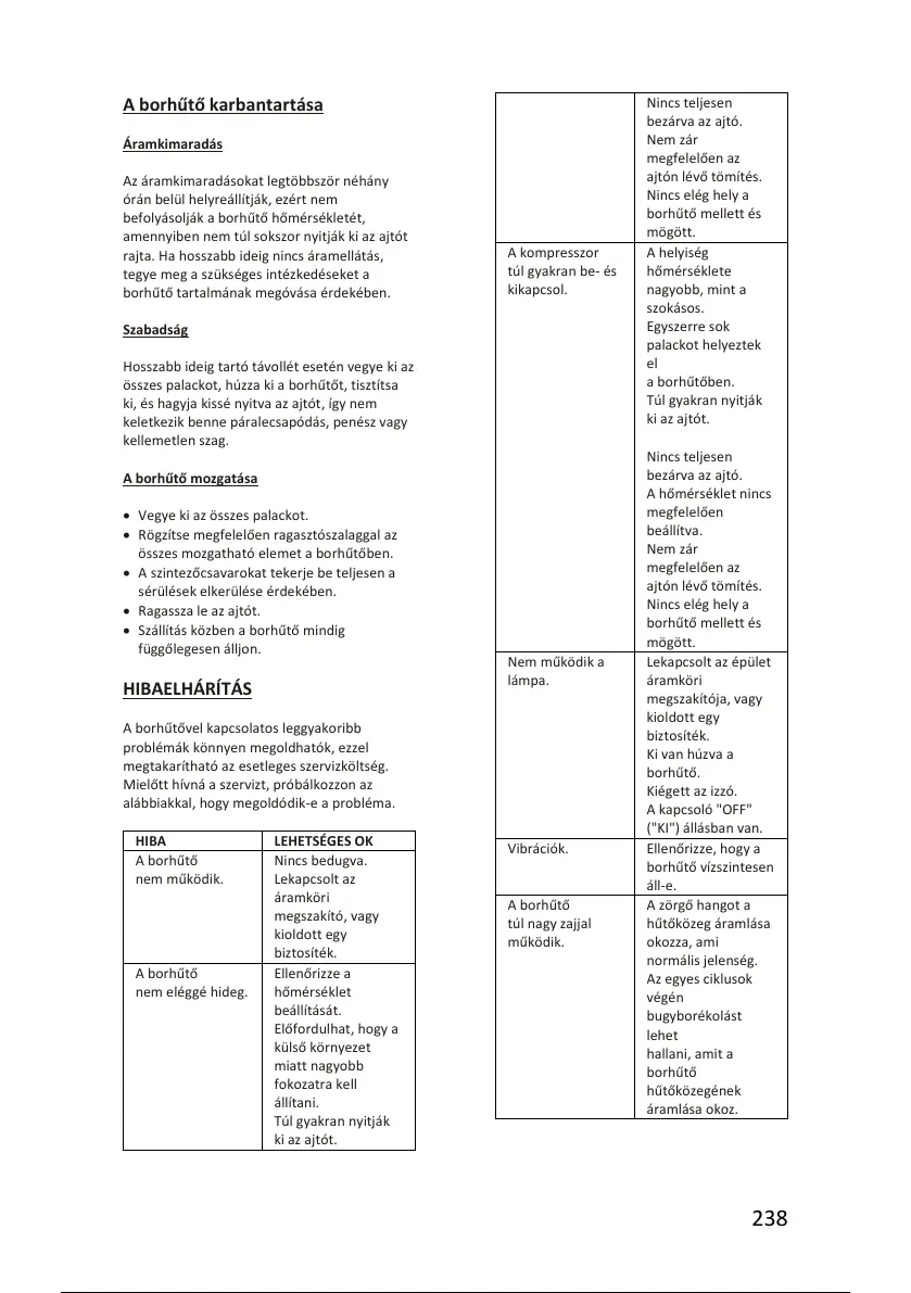 borhűtő tartalmának megóvása érdekében.
