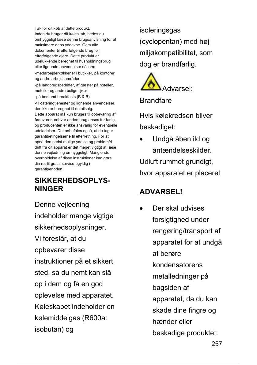 Inden du bruger dit køleskab, bedes du
