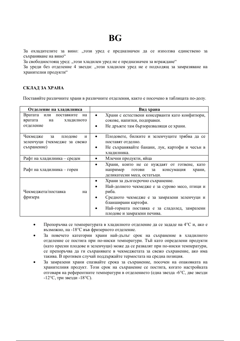 • За замразени храни спазвайте срока за съхранение, посочен на опаковката на