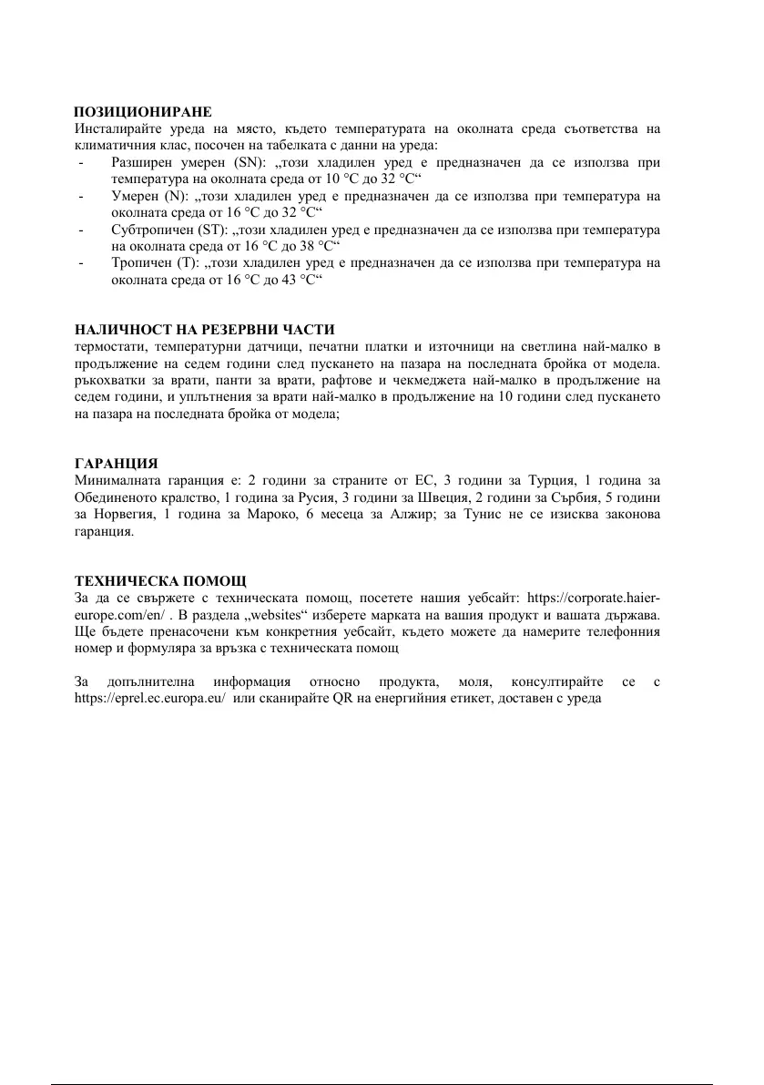 За да се свържете с техническата помощ, посетете нашия уебсайт: https://corporate.haier-