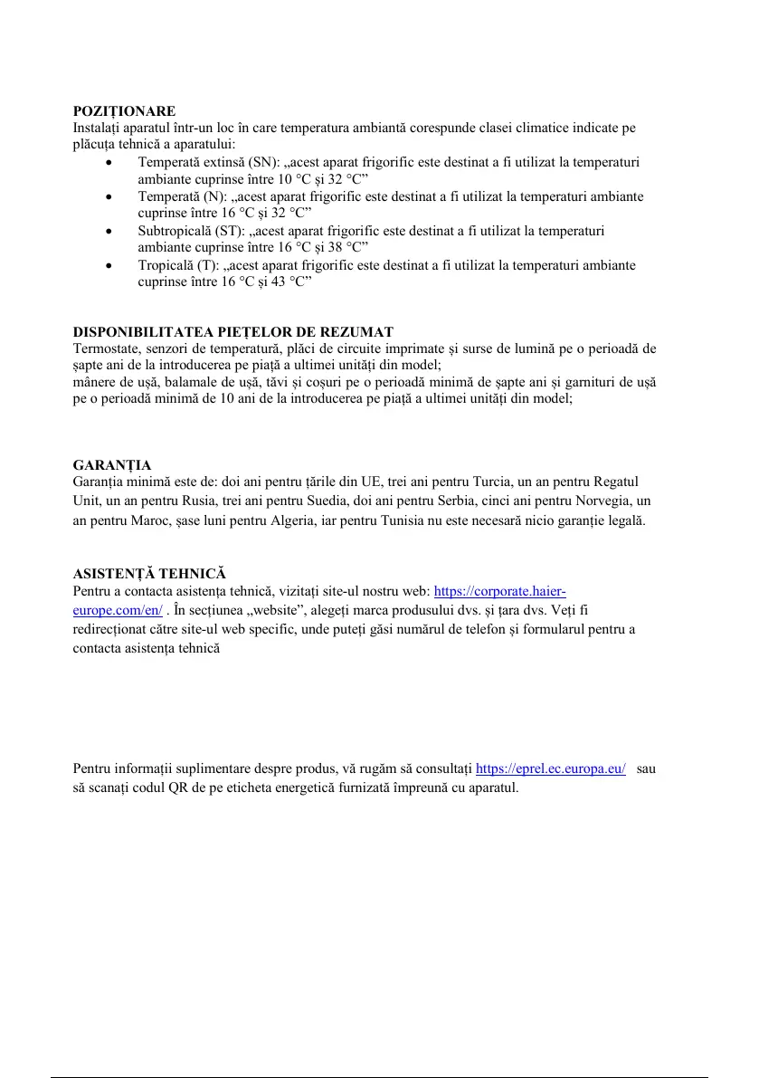 • Temperată (N): „acest aparat frigorific este destinat a fi utilizat la temperaturi ambiante