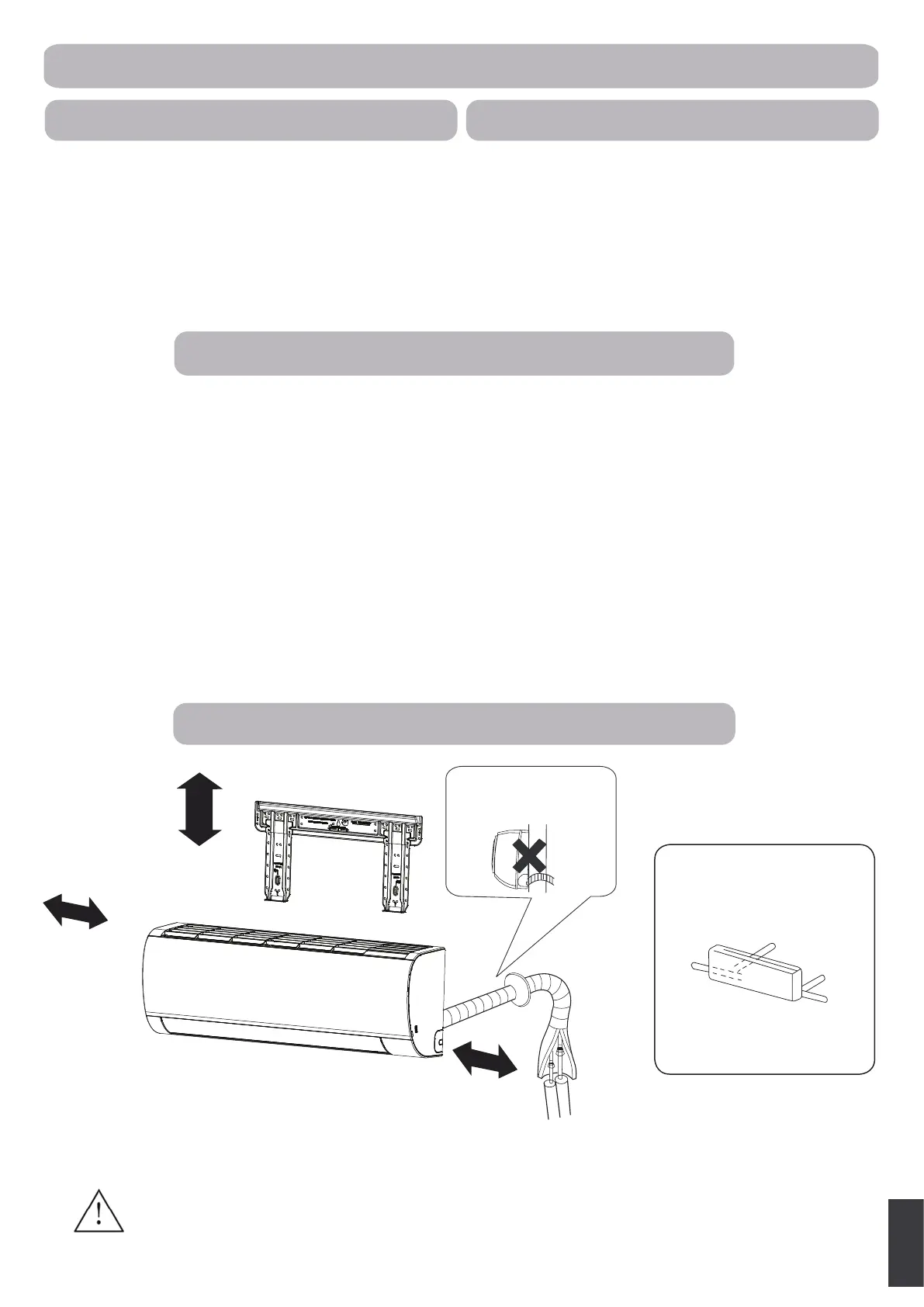 Zorg er bij gebruik van de linker afvoerleiding voor dat het gat is doorgebroken. De afstand tussen de binnenunit en de