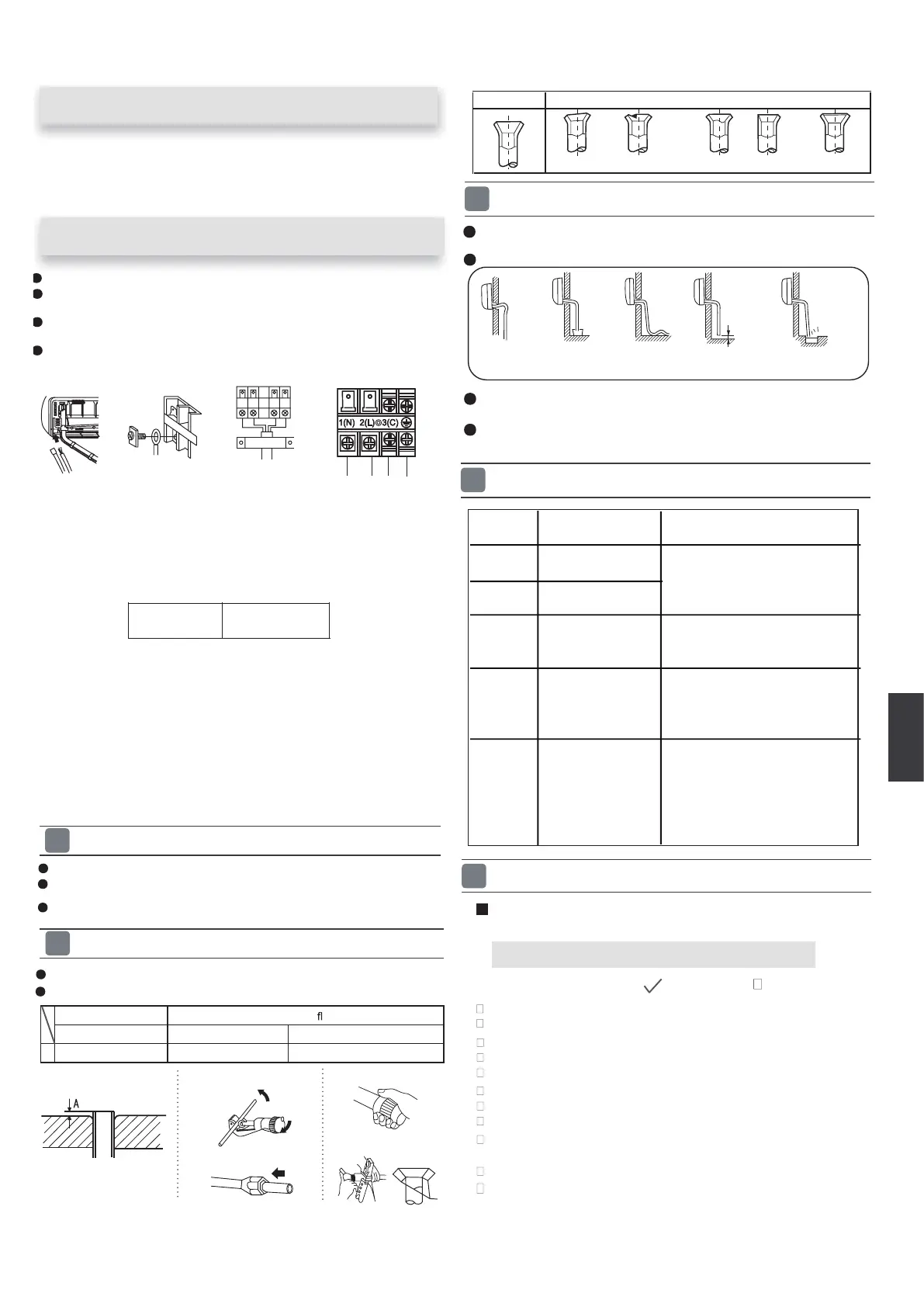 Anschlussklemmennummern von Innen- und Außengerät sorgfältig.