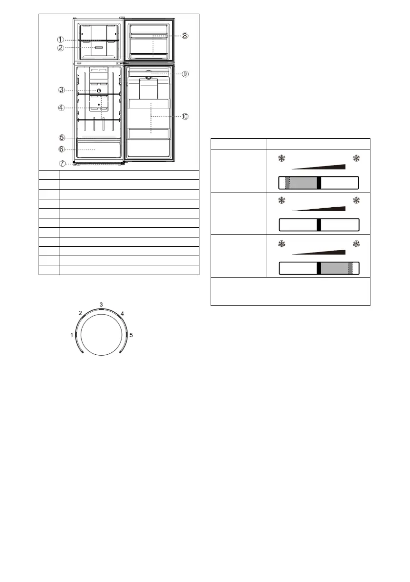 Teplotu ledničky lze nastavit pomocí knoflíkového