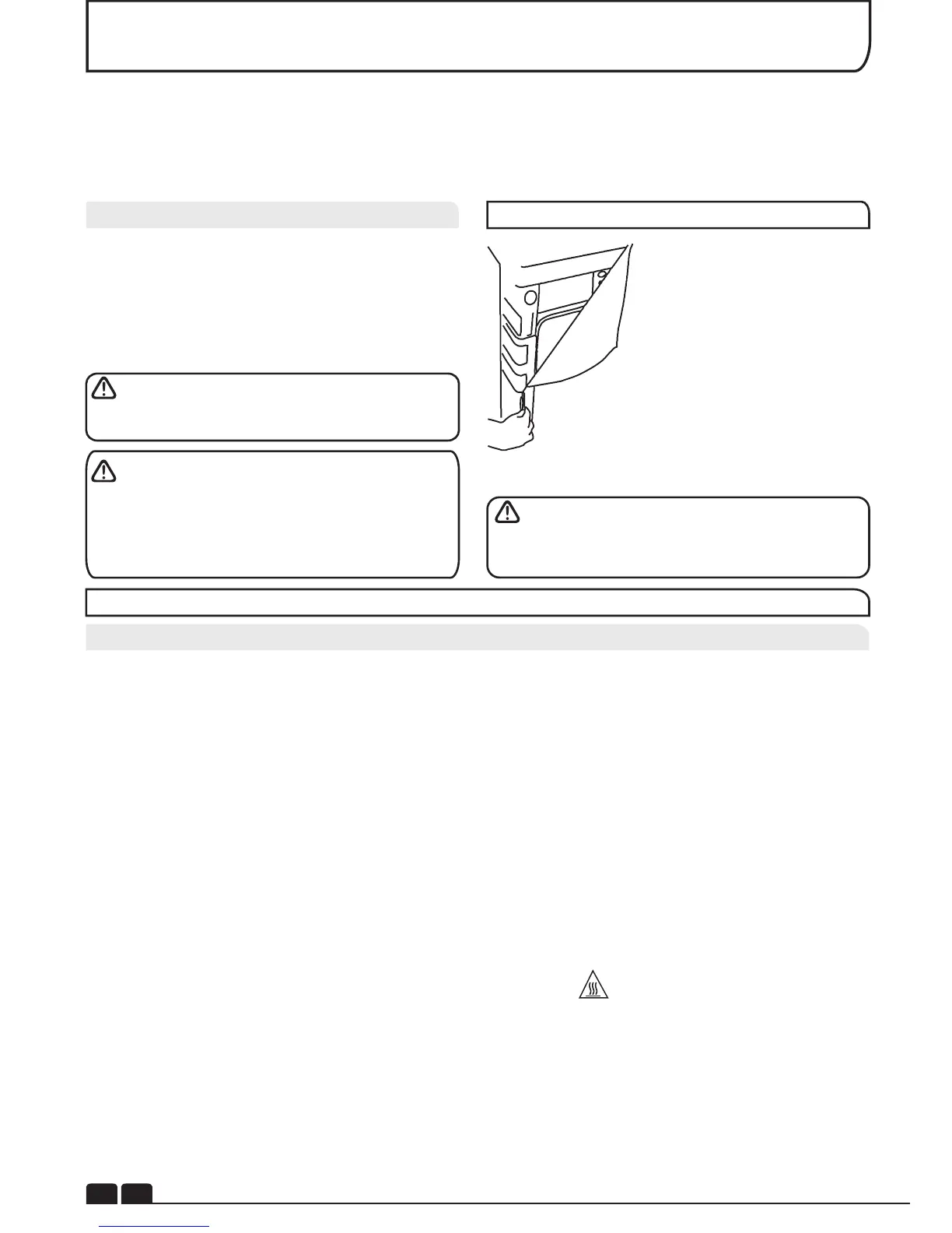● Luta dig aldrig mot luckan när du fyller på maskinen och lyft eller flytta aldrig maskinen i luckan.