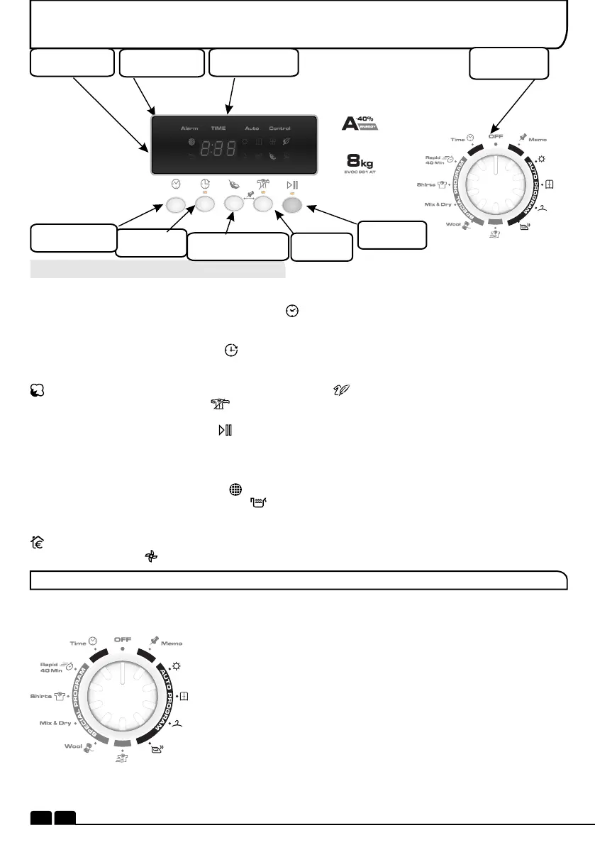 Botão Start/Pause (Iniciar/Parar) –Prima para iniciar/parar o programa de secagem seleccionado.