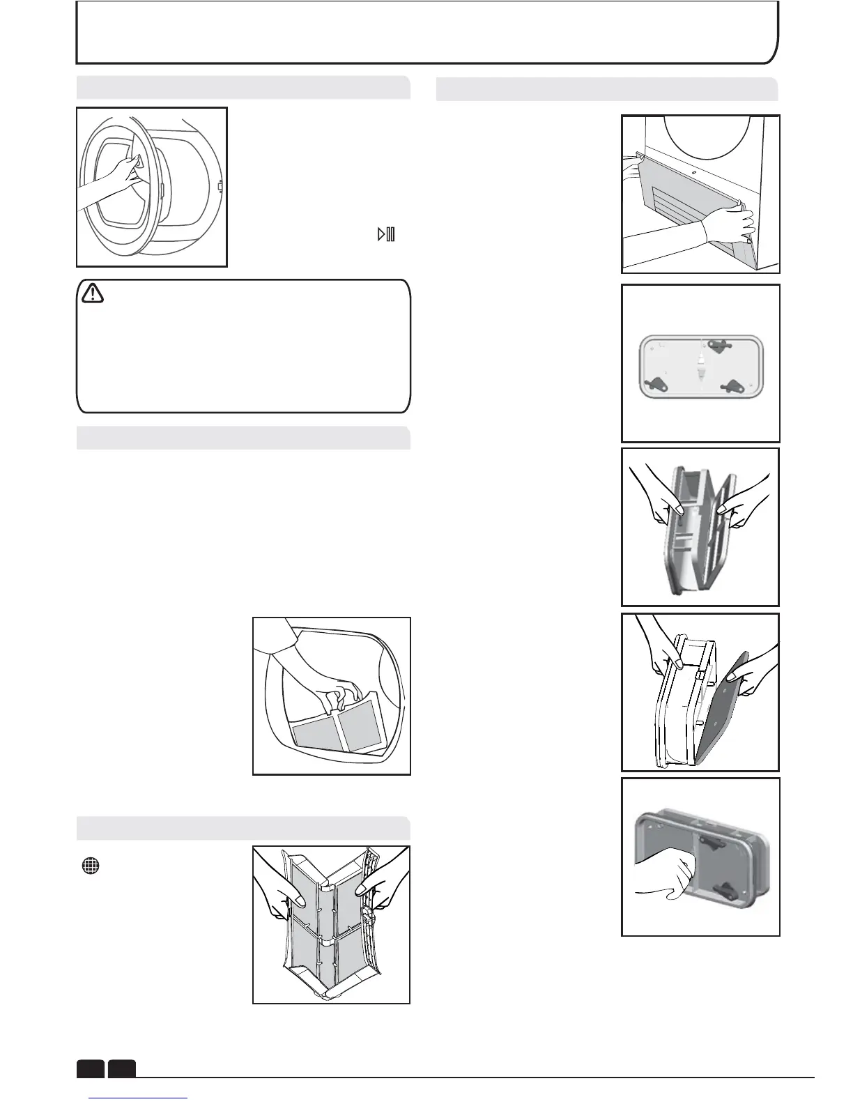 Ne pas utiliser le sèche-linge sans le filtre. Un