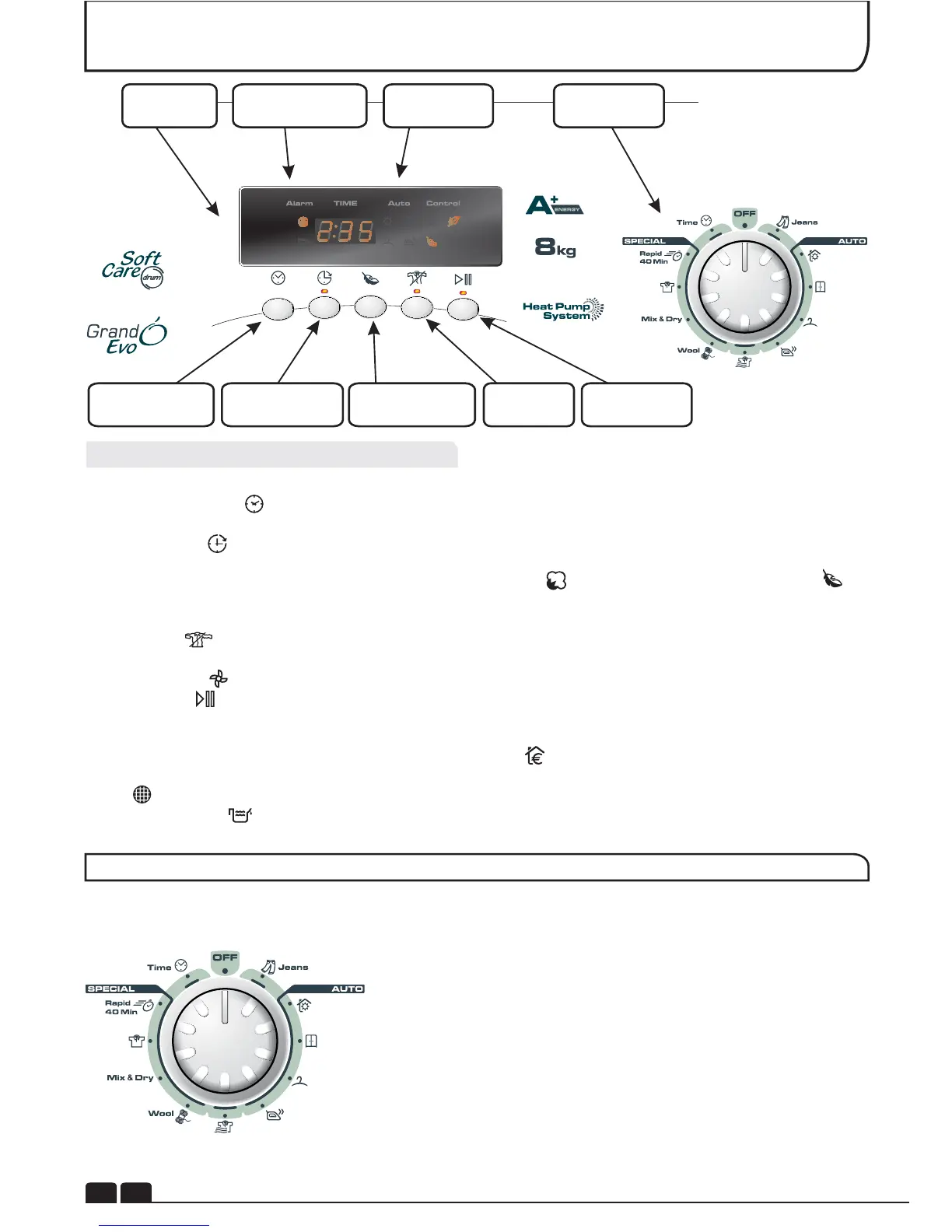 Botão selector: É rodado em ambas as direcções para se escolher o programa pretendido.