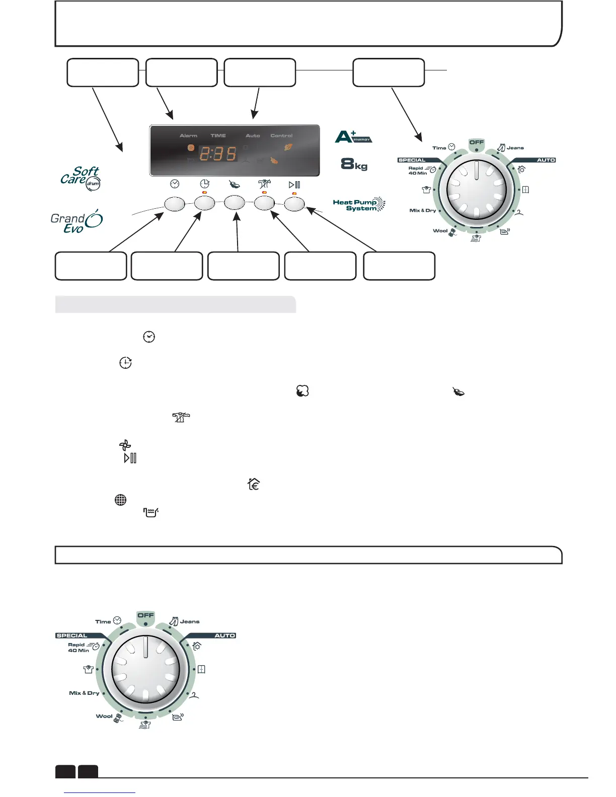 Time selection :To modify the drying timing of required programme; it works only with certain