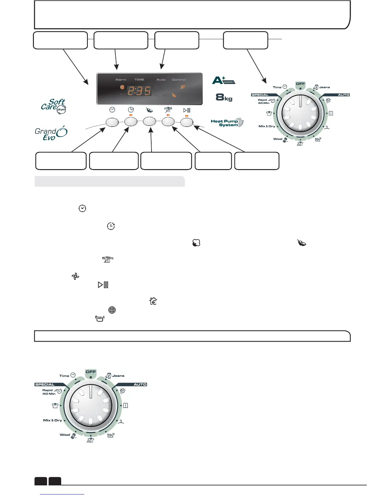 erikoistoiminto alentaa kuivauslämpötilaa, mikä suojaa arkoja vaatteita.