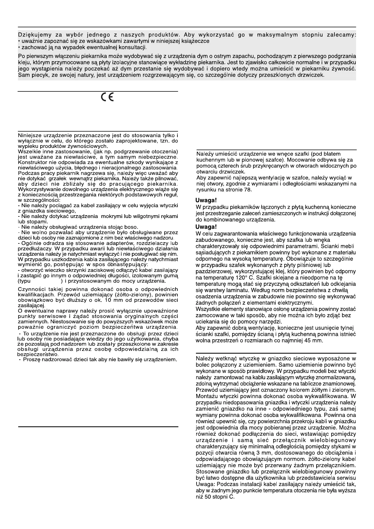 Za instalację piekarnika odpowiedzialny jest użytkownik. Producent