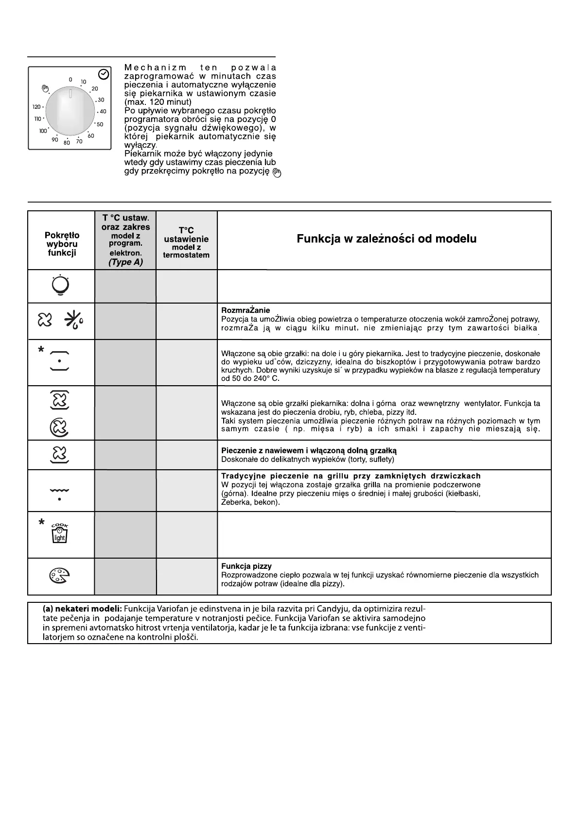 LAMPA: Włącza lampkę piekarnika.