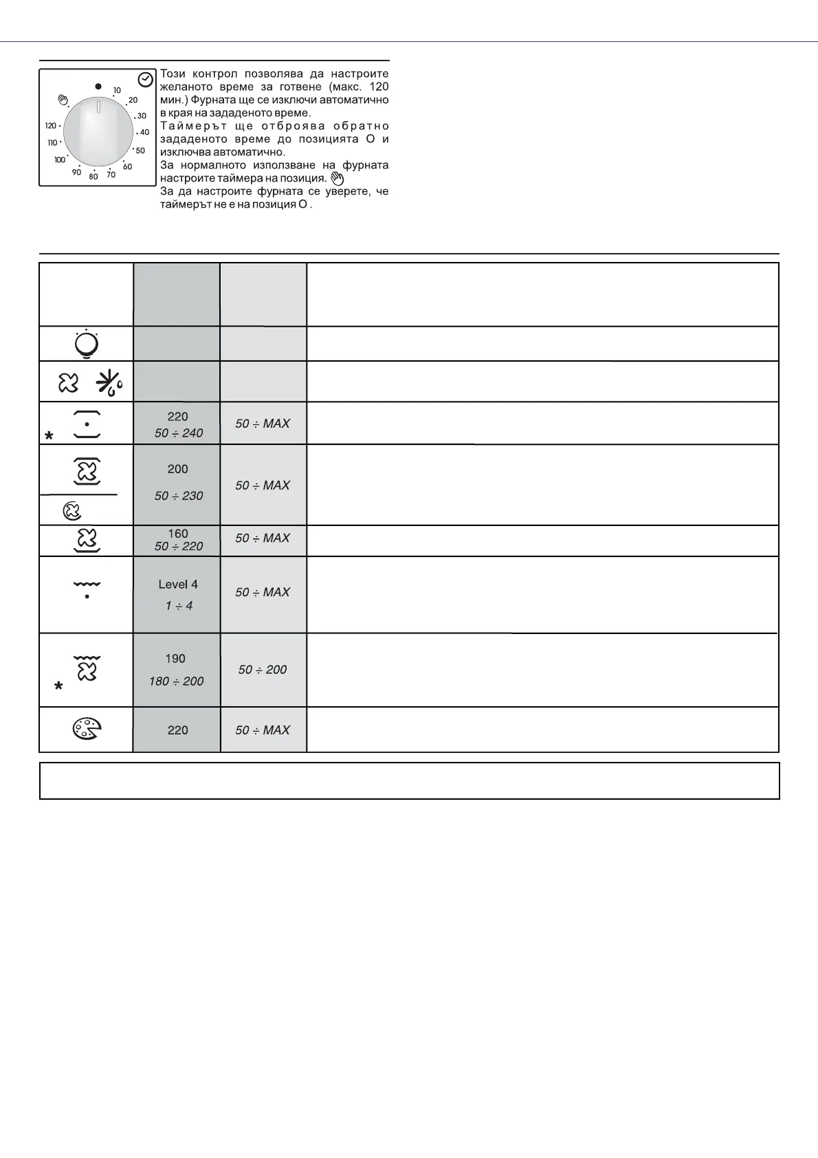 Използва се само горния нагревател и можете да настроите температурата мин. 5