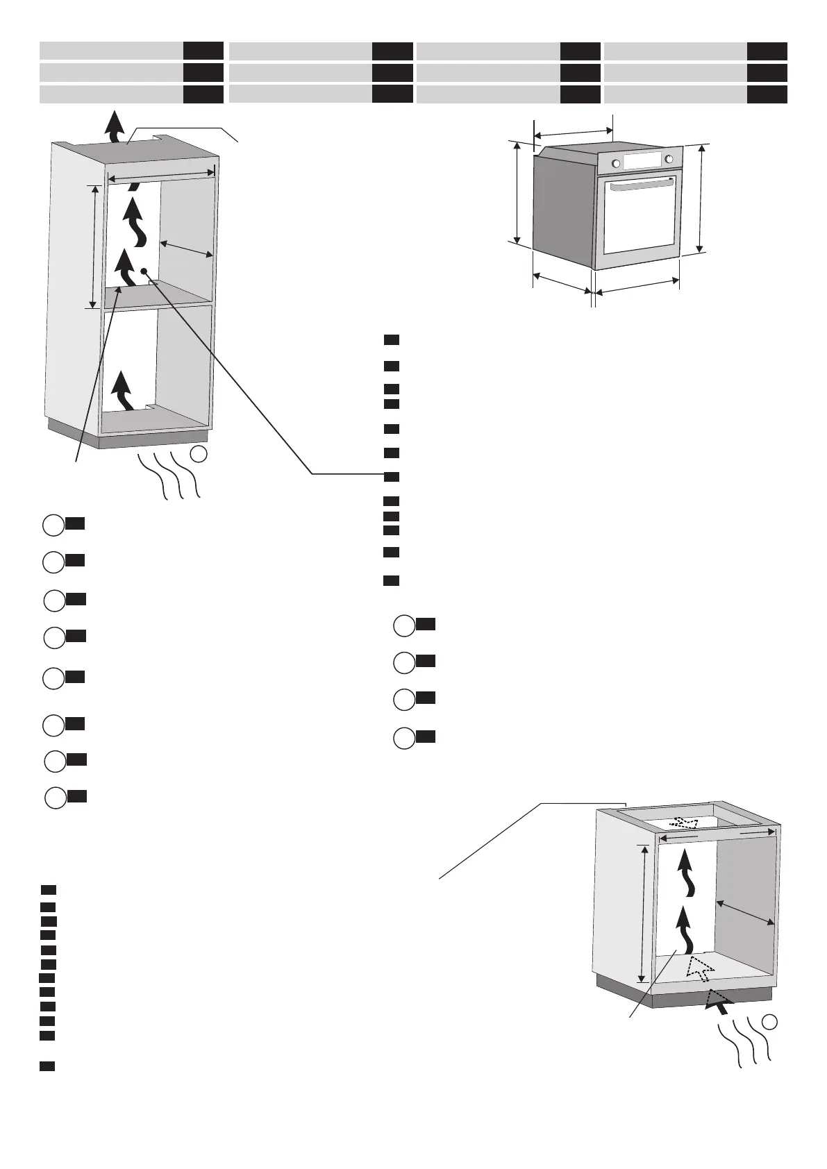 În cazul în care cuptorul nu este prevăzut cu ventilator de răcire, realizați o deschidere de 460 mm x 15 mm