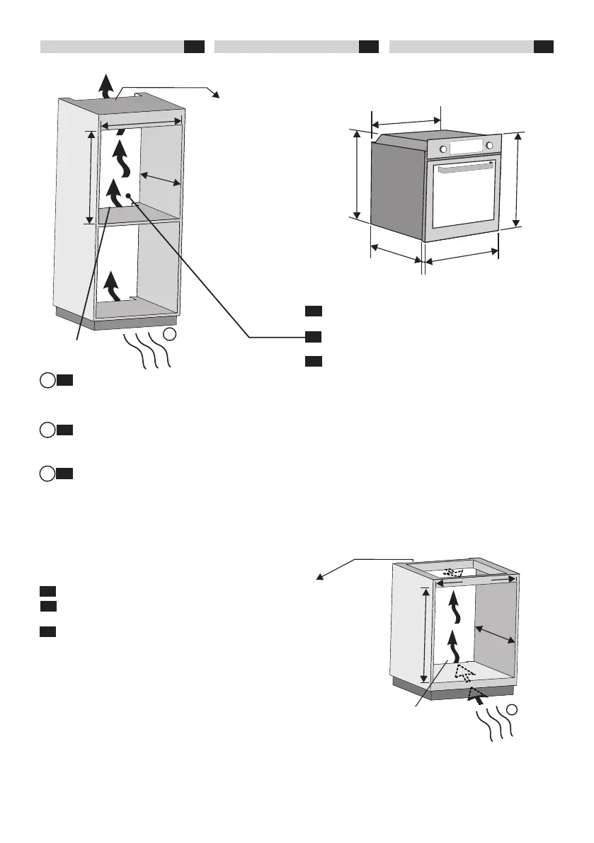 If the oven does not have a cooling fan, create an opening 460 mm x 15 mm