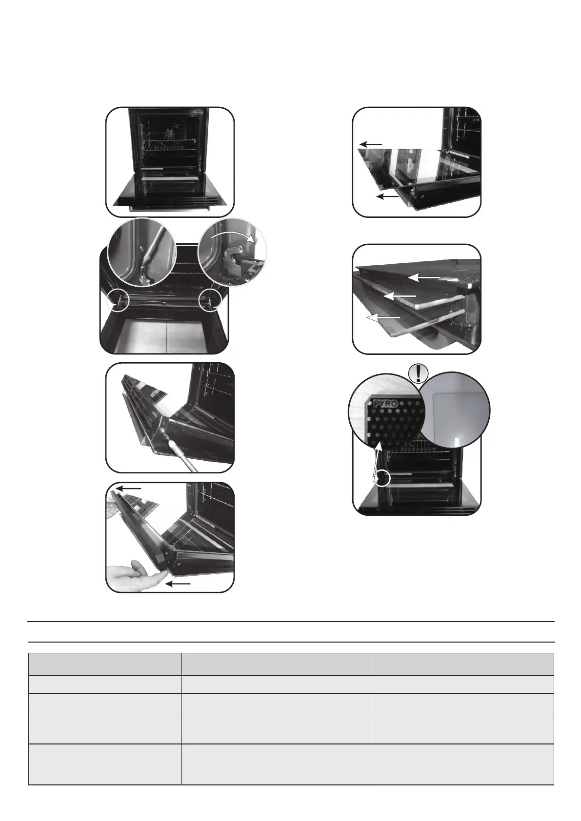 5.6. Remove the glass, carefully extracting it from the oven door (NB: in pyrolytic ovens, also remove the second and third glass (if present)).
