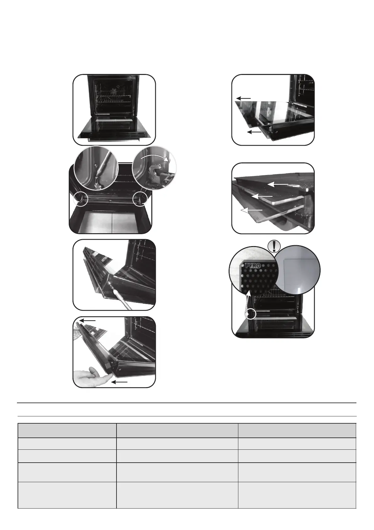 5.6. Retirez le verre, l'extraire soigneusement de la porte du four (NB: dans les fours de pyrolyse, retirez également les deuxième et