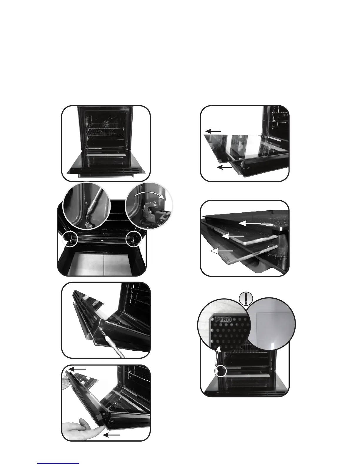 5.6. Rimuovere il vetro, estraendolo con molta cura, dalla controporta del forno (NB: nei forni pirolitici,