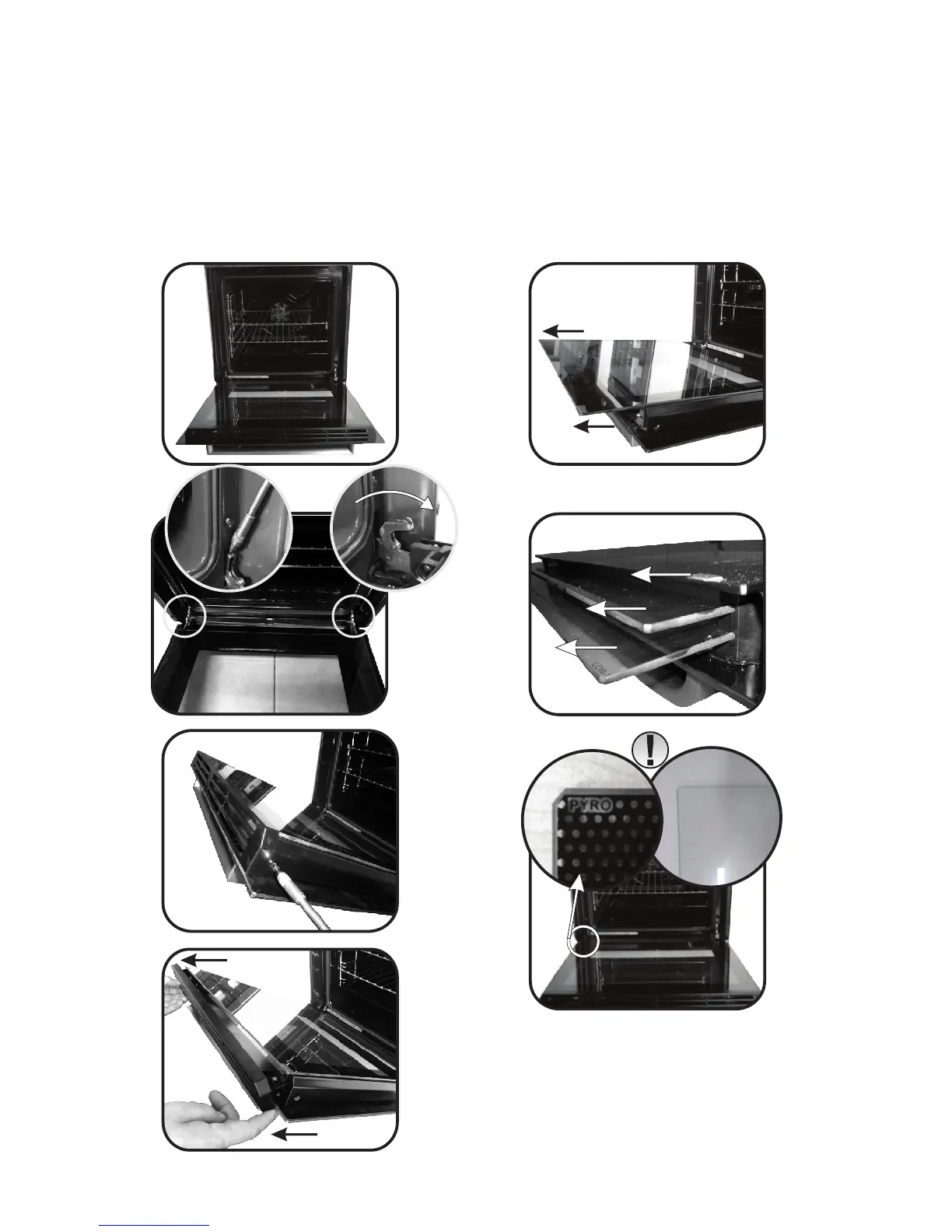 5.6. Vyjměte opatrně sklo ze dvířek trouby (Pozn: u pyrolytických trub vyjměte také druhé a třetí sklo