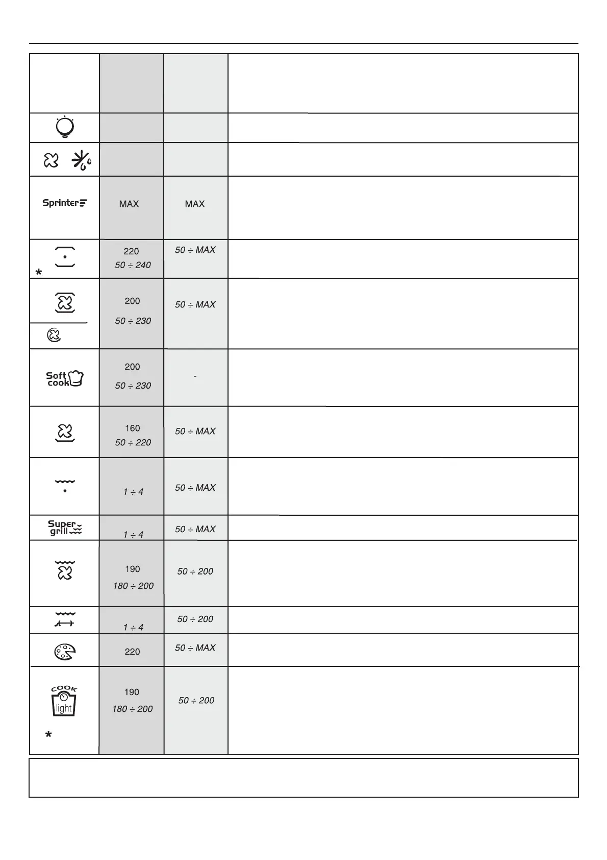 Esta posición permite un precalentamiento rápido del horno. Una vez seleccionada esta función,