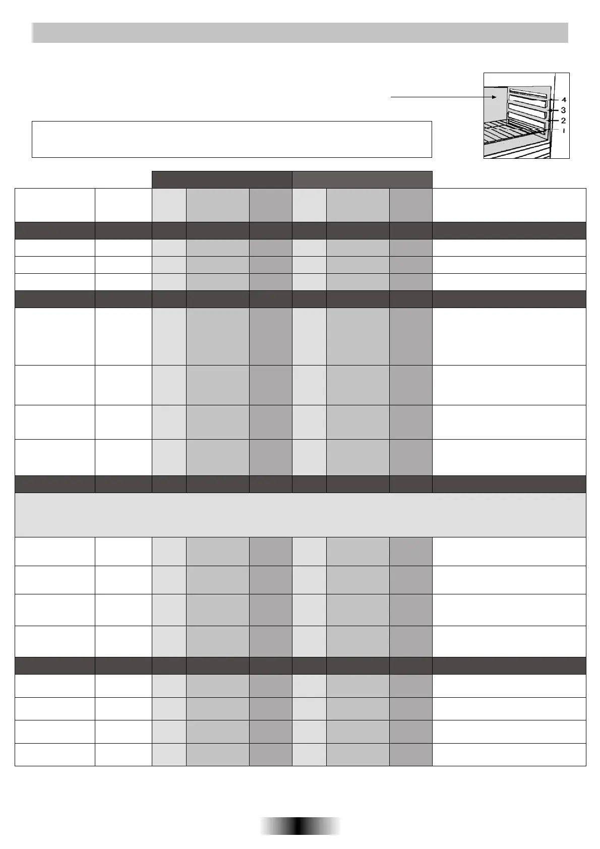 Los tiempos sugeridos en las tablas siguientes son indicativos y pueden variar según la calidad, frescura, dimensión y espesor de los