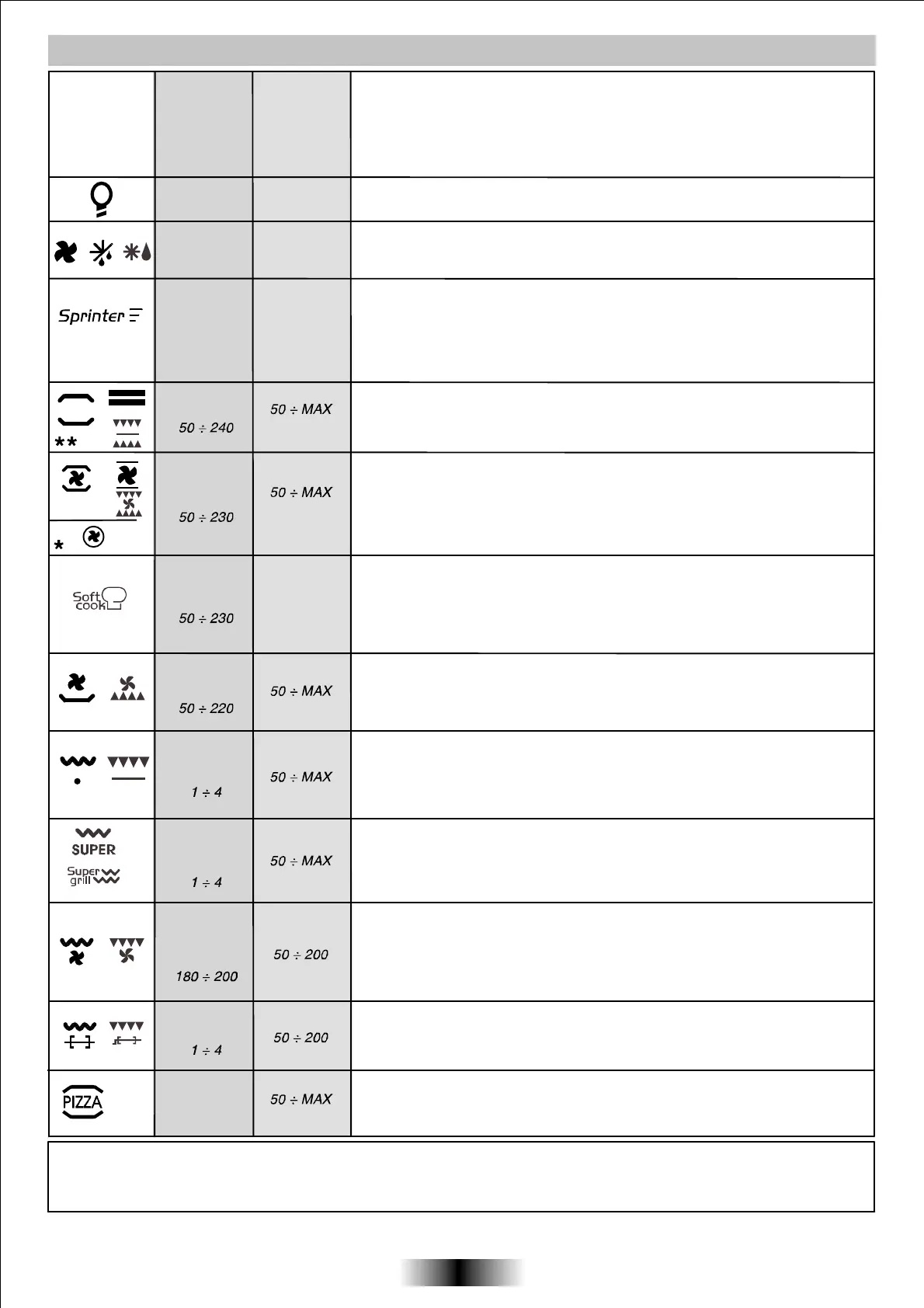Sprinter Esta posição regula um aquecimento prévio rápido do forno. Uma vez seleccionada