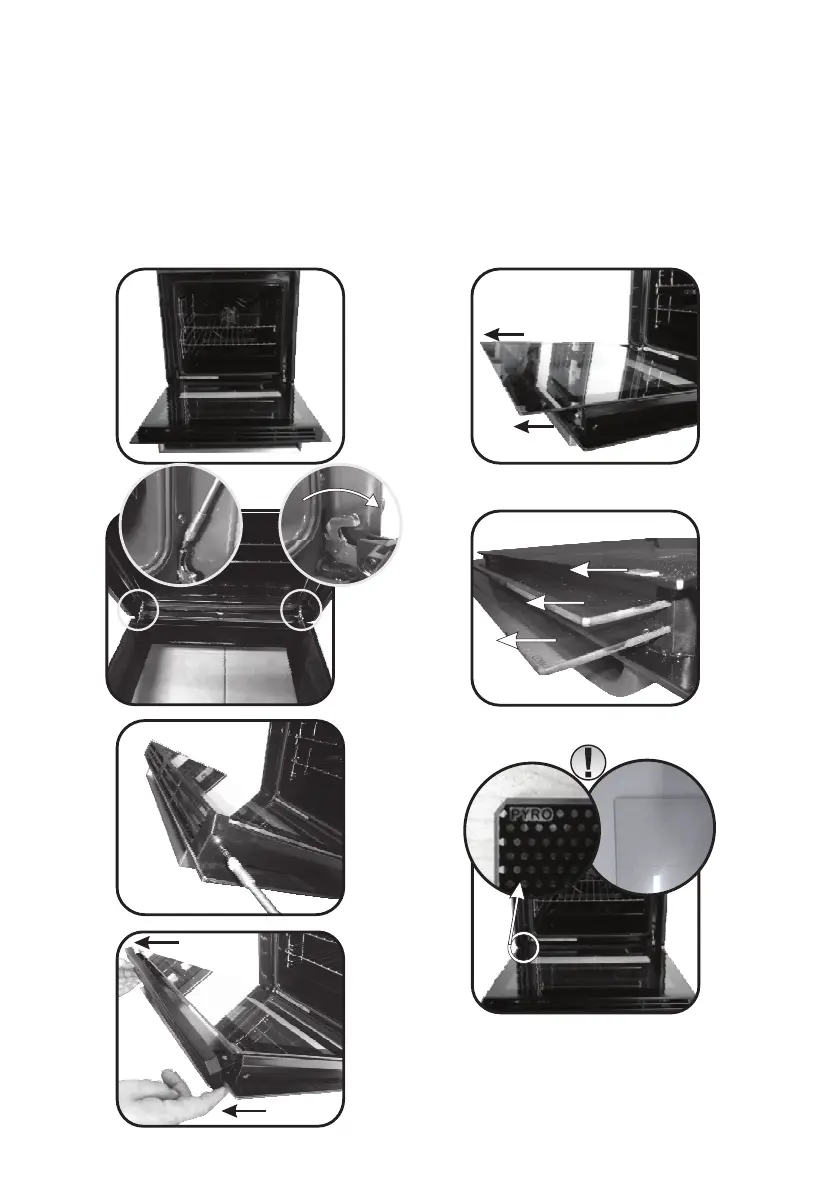 5.6. Rimuovere il vetro, estraendolo con molta cura, dalla controporta del forno (NB: nei forni pirolitici,