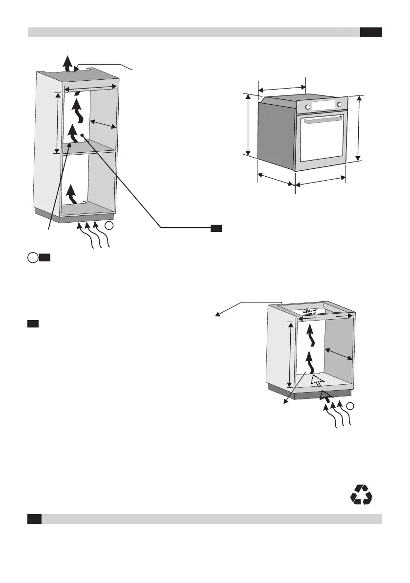 If the oven does not have a cooling fan, create an opening 460 mm x 15 mm